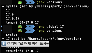 # 전역으로 설정할 버전 선택 (필자는 17로 선택함)